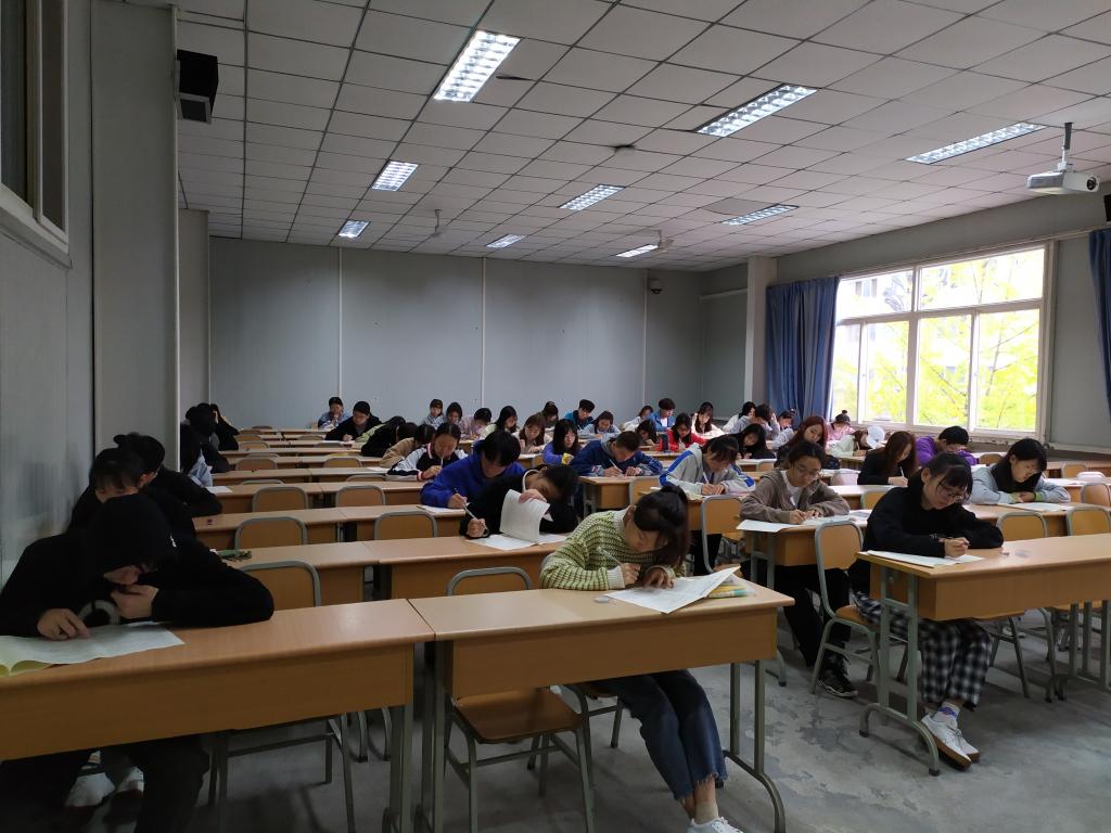 2020年10月17日上午九点,滚球买球的app官网在10号教学楼组织了2020年“全国语文教师读书竞赛”活动。本次竞赛在滚球买球的app官网考点共设置了8个考场,汉语言文学专业2018级、2019级全体学生参加了竞赛。