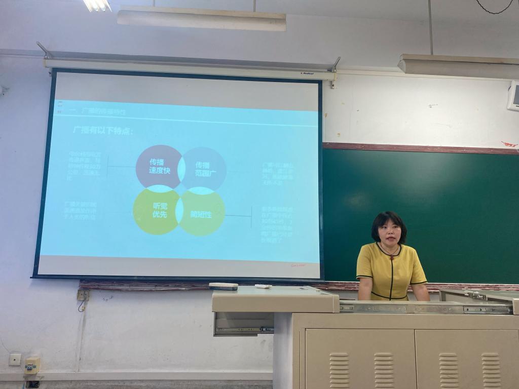 童慧从事新闻采编工作三十余年,曾获陕西省优秀新闻工作者、陕西省宣传先进个人、安康走基层好记者等荣誉称号,其作品更揽获中国新闻奖二等奖、陕西省新闻奖一等奖等国家级、省部级、地市级奖项。讲座中,童慧立足丰富的新闻实战经历,以自己的获奖作品《矗立在瀛湖岸边的丰碑》《陕西、湖北老乡隔空喊话,邻里互助共同抗疫》《三十年的广播情》等为案例,通过讲述创作背后的故事、新闻采写要点,让同学们在“听”中辨别广播新闻的类型,感受广播新闻的语言风格,掌握广播新闻的写作技巧,提升学生灵活应变将理论知识运用到新闻采写实践中的能力。