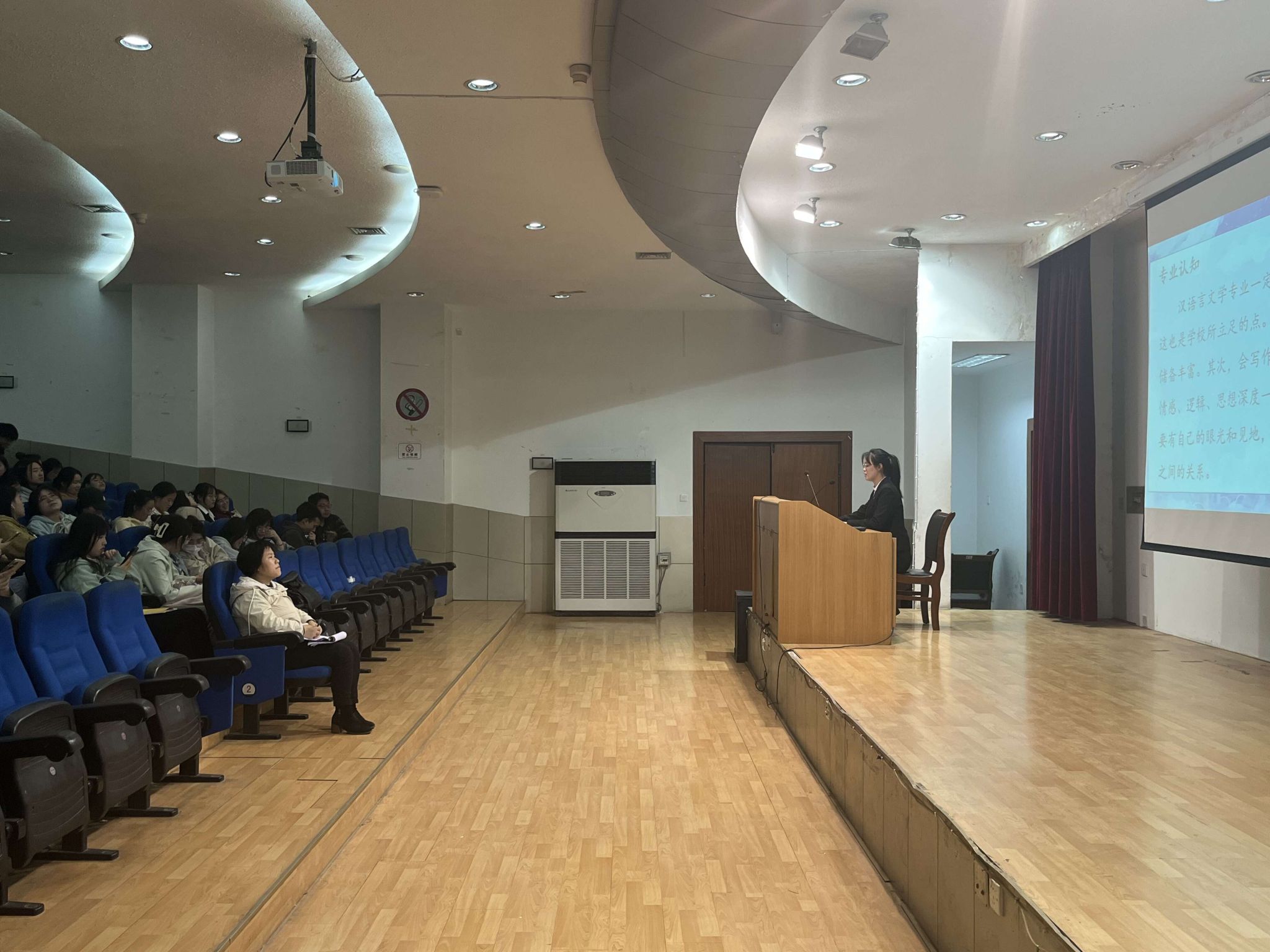 2023年4月7日晚上,滚球买球的app官网在江南校区一号楼报告厅组织召开“地方企业行业问题讲座”学习汇报会。汉语言文学系主任韩文霞及本专业2020级全体学生参会。