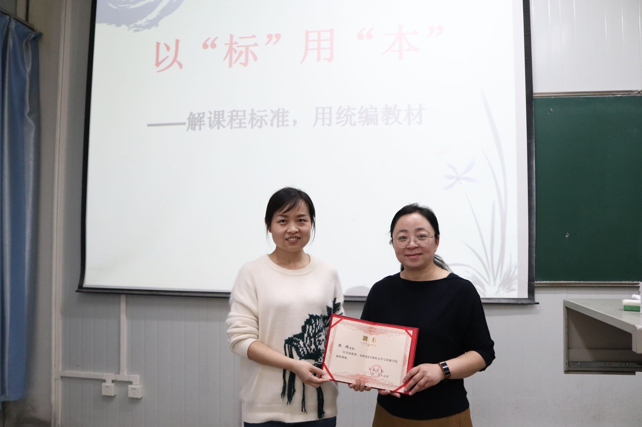 聘任仪式上,学院副院长李婷为张娟颁发外聘教师证书,并对张老师支持汉语言文学专业人才培养工作表示由衷感谢。