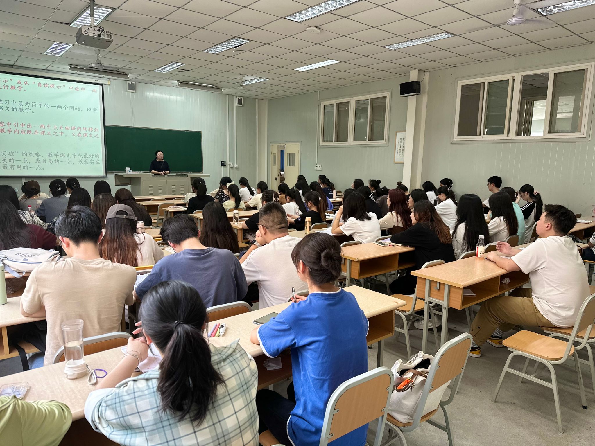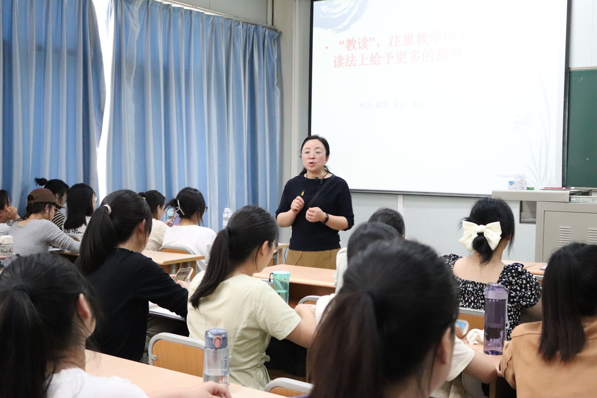 随后,张娟为汉语言文学专业2020级学生带来“以‘标’用‘本’——解课程标准,用统编教材”专题讲座。讲座中,张娟以《范进中举》《刘姥姥进大观园》等不同课文为例,引导学生从教师视角关注教读课、自读课、整本书课外阅读课,指导学生文本阅读的方法,为学生日后在中学语文教学中指导中学生学习打下基础。