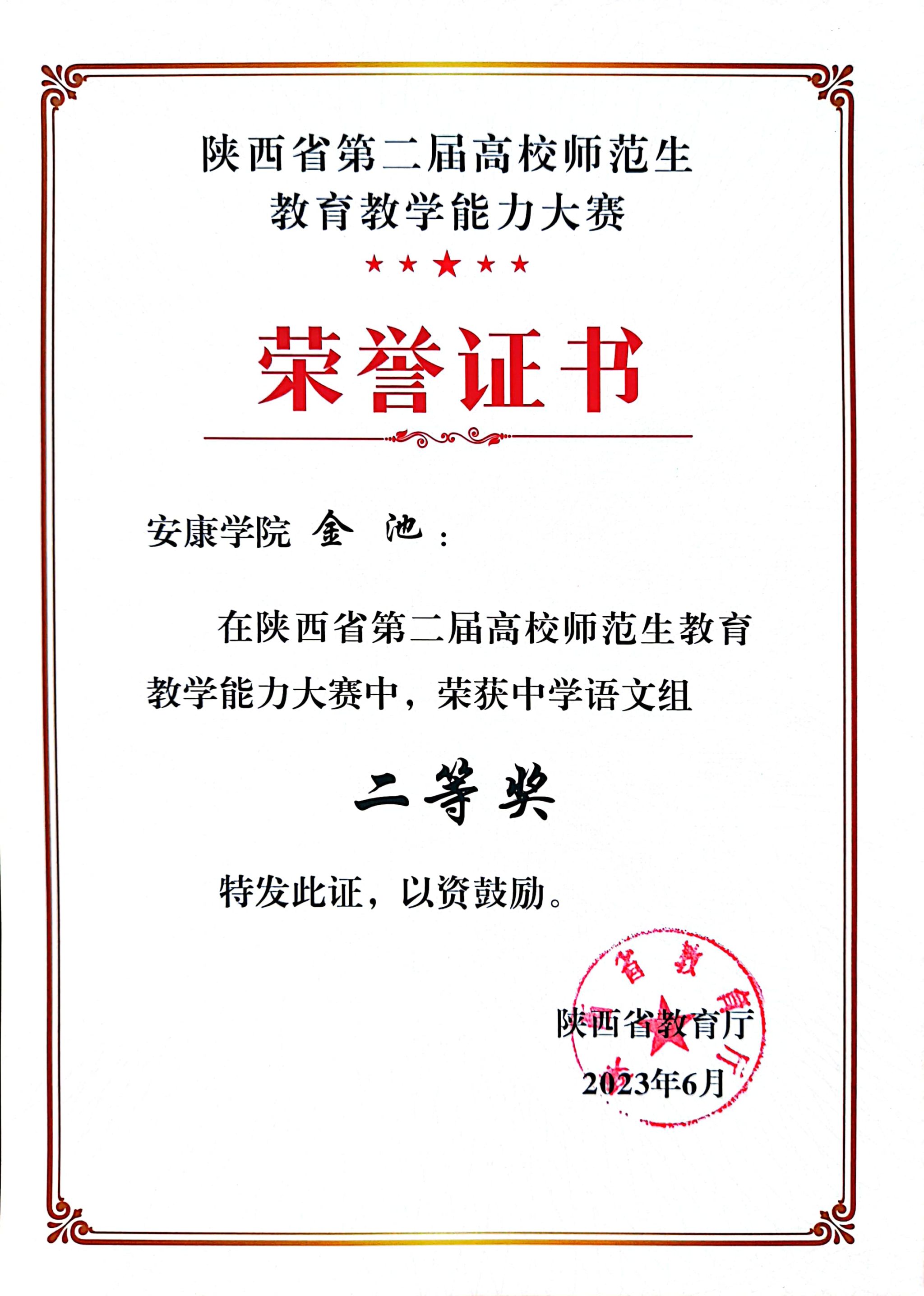 由陕西省教育厅主办,陕西师范大学承办,西安文理学院协办的“振兴师范 奠基良师”陕西省第二届高校师范生教育教学能力大赛于5月22日落下帷幕,滚球买球官网汉语言文学专业2020级张蓉、金池两位同学代表滚球买球的app官网参加中学语文组决赛并荣获一等奖、二等奖。