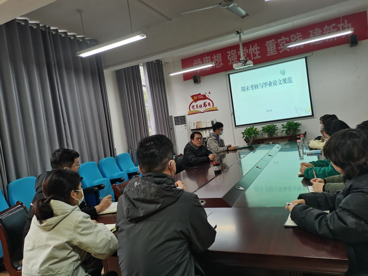 为提高青年教师的期末出题水平和毕业论文指导质量,提升学院的教学资料归档质量,以更好地迎接教育教学审核评估,12月13日下午,滚球买球的app官网在2307会议室组织青年教师开展了“期末考核及毕业论文规范”经验交流活动。活动由副院长朱云主持,公共教研室主任黄治强老师主讲,近三年新入职青年教师参会学习交流。