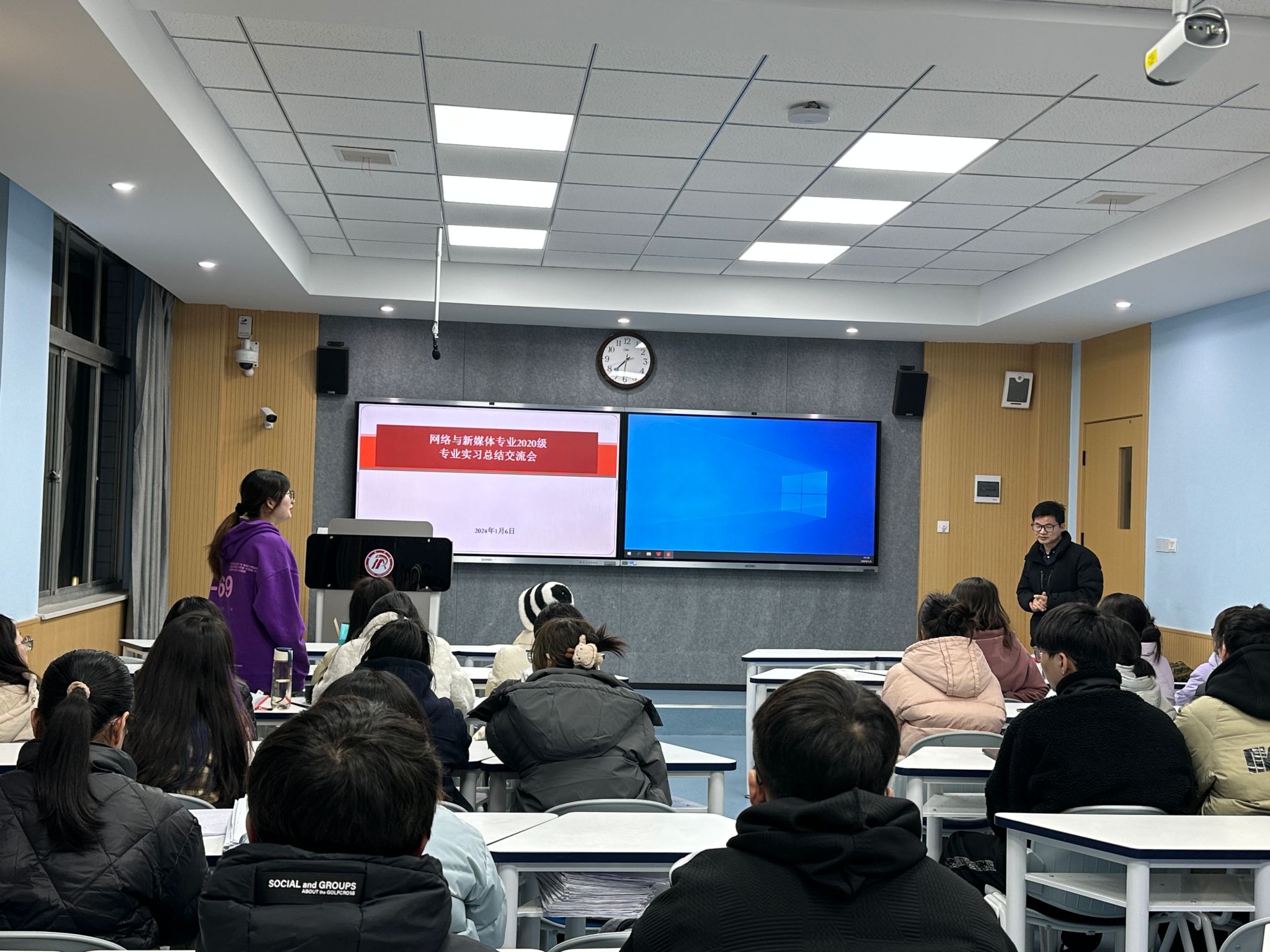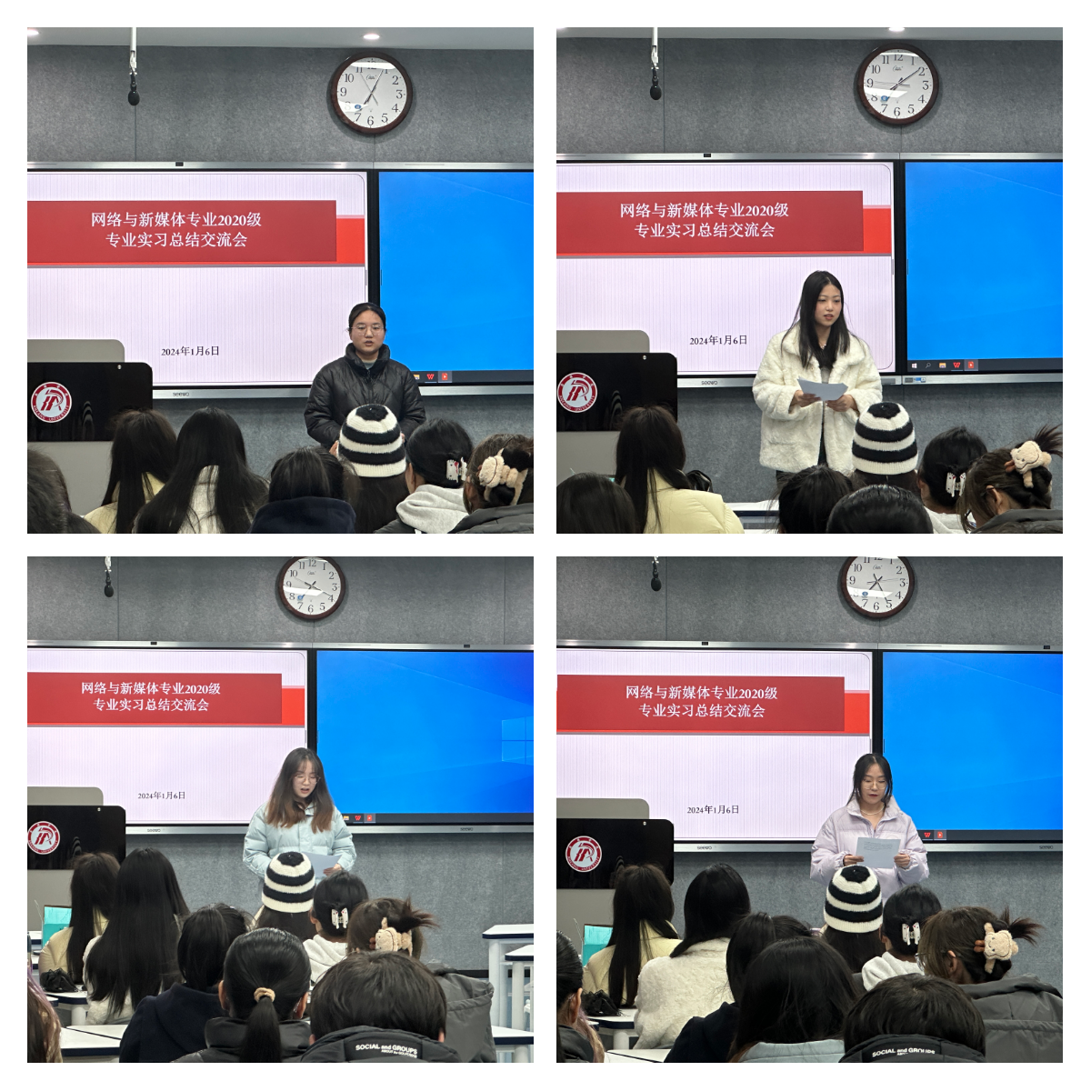 2024年1月6日晚,滚球买球的app官网网络与新媒体2020级全体学生在1205教室召开专业实习经验分享交流会。会议由实习带队教师张建涛主持,本次会议分为三个环节,首先是优秀学生代表发言,其次为学生自由发言,最后由教师张建涛对此次实习工作进行了总结。