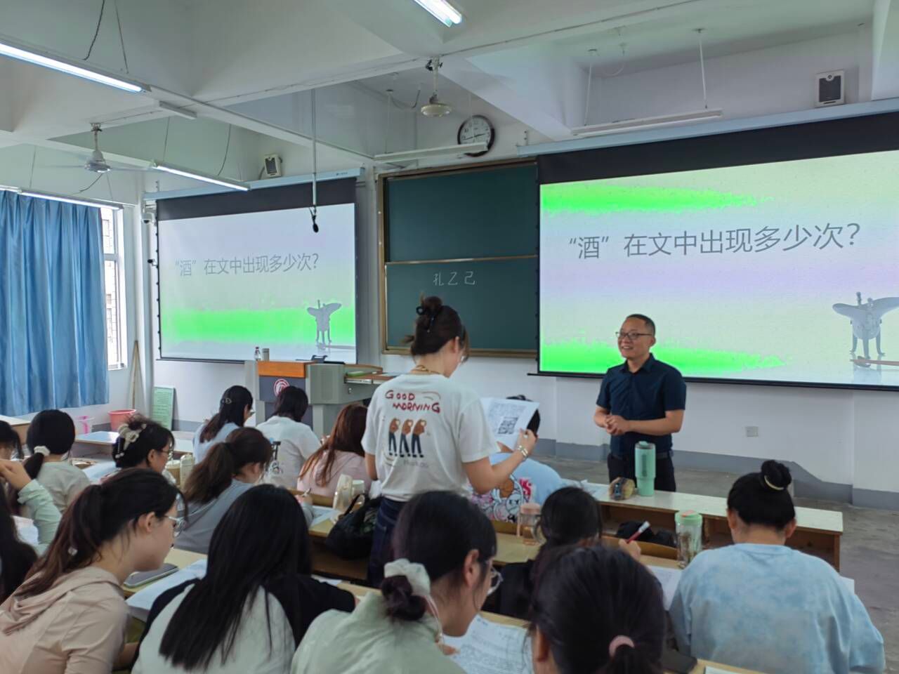 示范课上张老师别出心裁抓住“酒”这一意象,以“酒”为线索推动教学,引导同学们发现“酒”的叙事密码,带领同学们深入研读文本,整堂课行云流水、轻松自在,为同学们带来了一场从文本深度剖析到教学创新突破的思维盛宴。