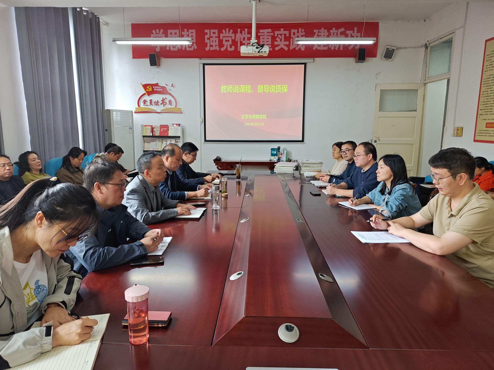 10月15日下午,滚球买球的app官网组织全体教师在2307会议室召开了“教师说课程、督导说质保”研讨会。汉语言文学系、秘书与新媒体系、公共教研室各推选一名教师进行说课程汇报,督导组成员则分别进行了说质保汇报。
