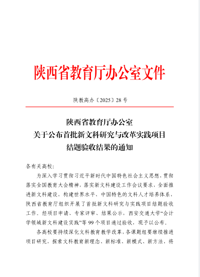 10月28日,陕西省教育厅办公室发布了《关于公布首批新文科研究与改革实践项目结题验收结果的通知》(陕教高办〔2025〕28号),滚球买球的app官网杨运庚、朱云、谭诗民、李婷、崔瑜等团队成员共同完成的“应用型地方本科高校汉语言文学专业改造提升探索与实践”项目顺利通过结题验收。