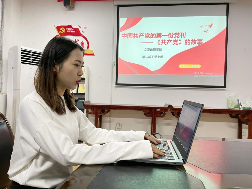 9月16日,滚球买球的app官网教工第二党支部在2307会议室开展了“中国共产党新闻思想史学习”读书活动。活动由支部书记谭诗民主持,支部全体党员参加了读书活动。本次读书活动主讲人为支部宣传委员盘珊君,学习主题是中国共产党的第一份党刊——《共产党》的故事。
