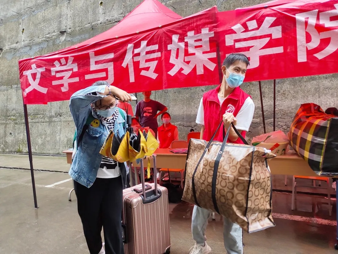 滚球买球的app官网学生第一、二党支部的志愿者们在十号楼门前的文传迎新点热情相迎,他们引导新生到体育馆报道处办理入学登记、搬运行李、宿舍登记、领日用品、办校园卡等一应入学手续。然后继续来回穿梭于校园,迎接下一位新同学。