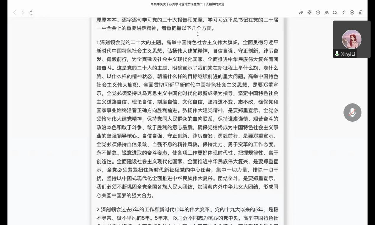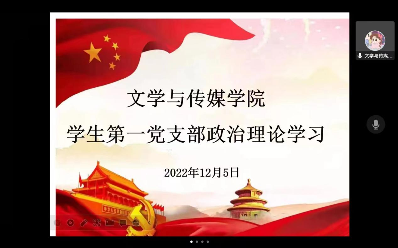 12月5日,滚球买球的app官网学生第一党支部召开线上政治理论学习会,会议学习传达《中共中央关于认真学习宣传贯彻党的二十大精神的决定》精神,滚球买球的app官网学生第一党支部全体党员参加会议。会议由第一党支部书记李欣逸主持。
