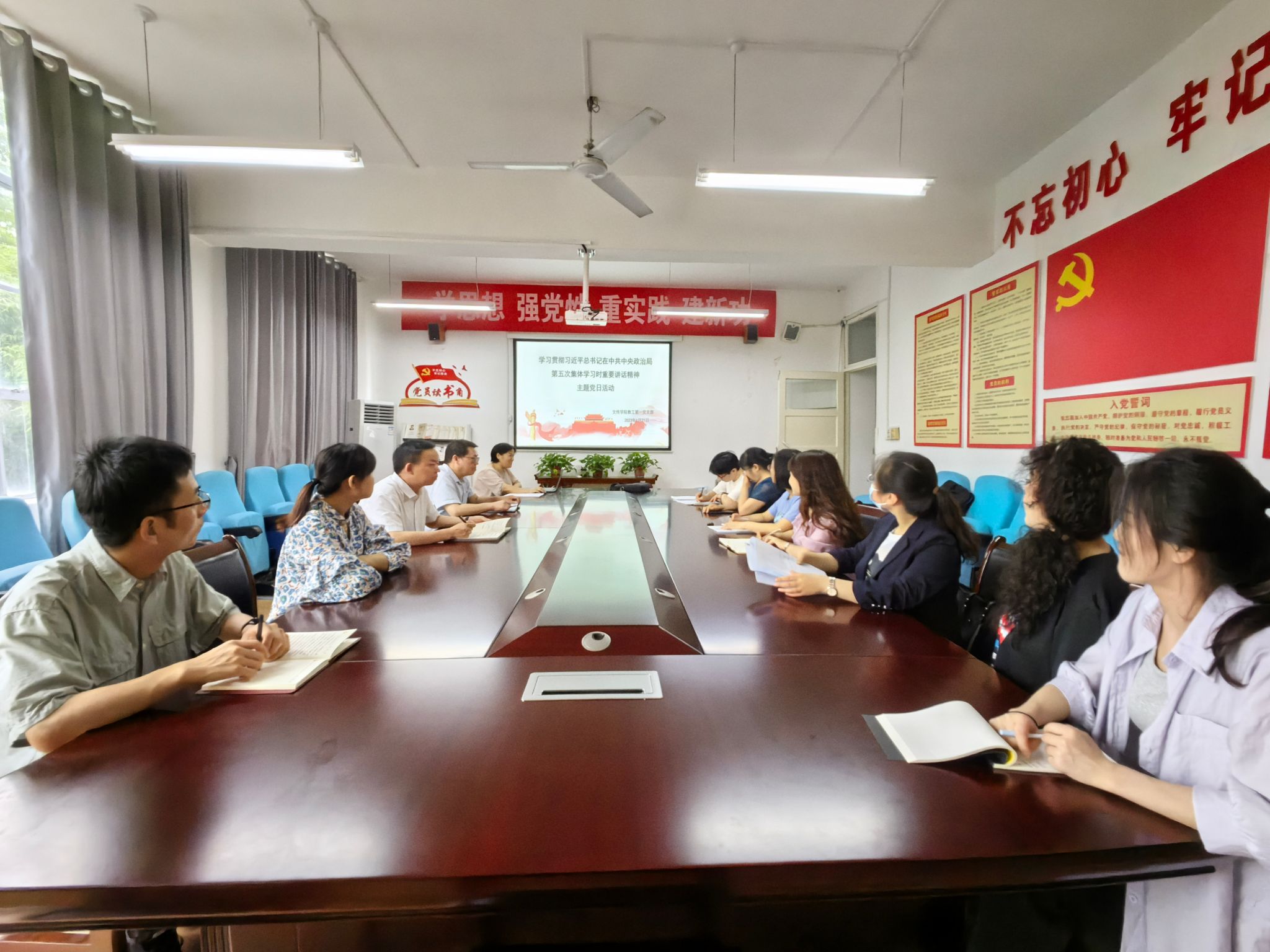 6月21日下午,滚球买球的app官网教工第一党支部在2307室开展了主题党日活动,活动主题是“学习习近平总书记讲话精神,做合格人民教师”。活动由支部书记韩文霞主持,支部全体党员参加了主题党日活动。