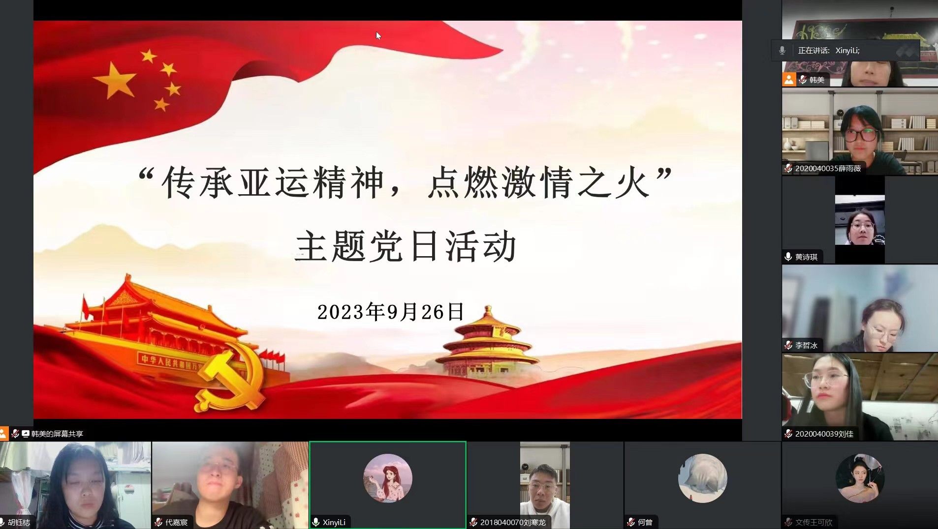 9月26日晚滚球买球的app官网学生第一党支部召开“传承亚运精神,点燃激情之火”特色主题党日活动本次活动由滚球买球的app官网第一党支部书记欣逸主持支部全体党员参会。