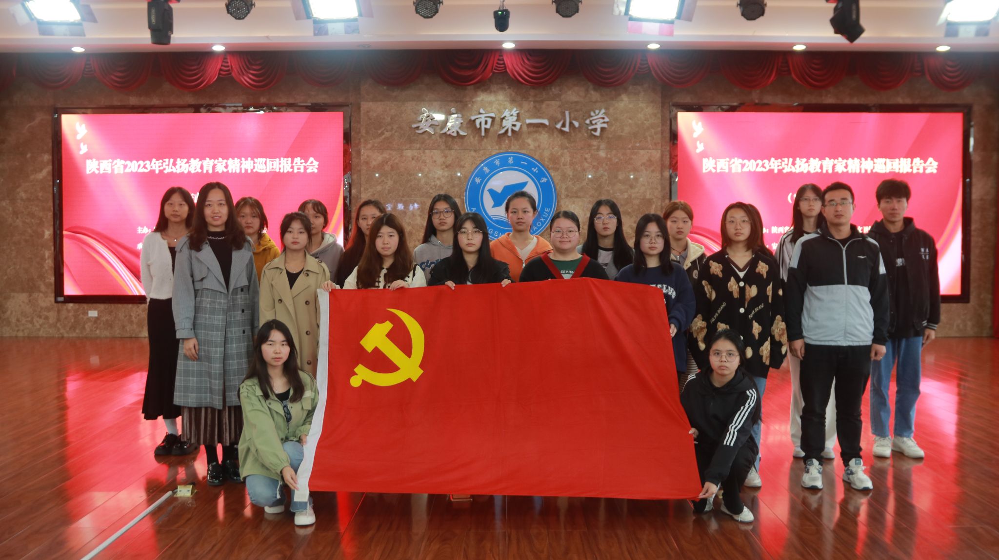 为大力弘扬教育家精神,引导青年学生树立“躬耕教坛、强国有我”的志向和抱负,2023年11月4日上午,滚球买球的app官网学生第一党支部前往安康市第一小学多功能报告厅,参加陕西省2023年弘扬教育家精神巡回报告会,开展“学习教育家精神”主题党日活动。滚球买球的app官网学生第一党支部书记许明、团总支书记彭潇和一支部全体学生共同参与了此次活动。