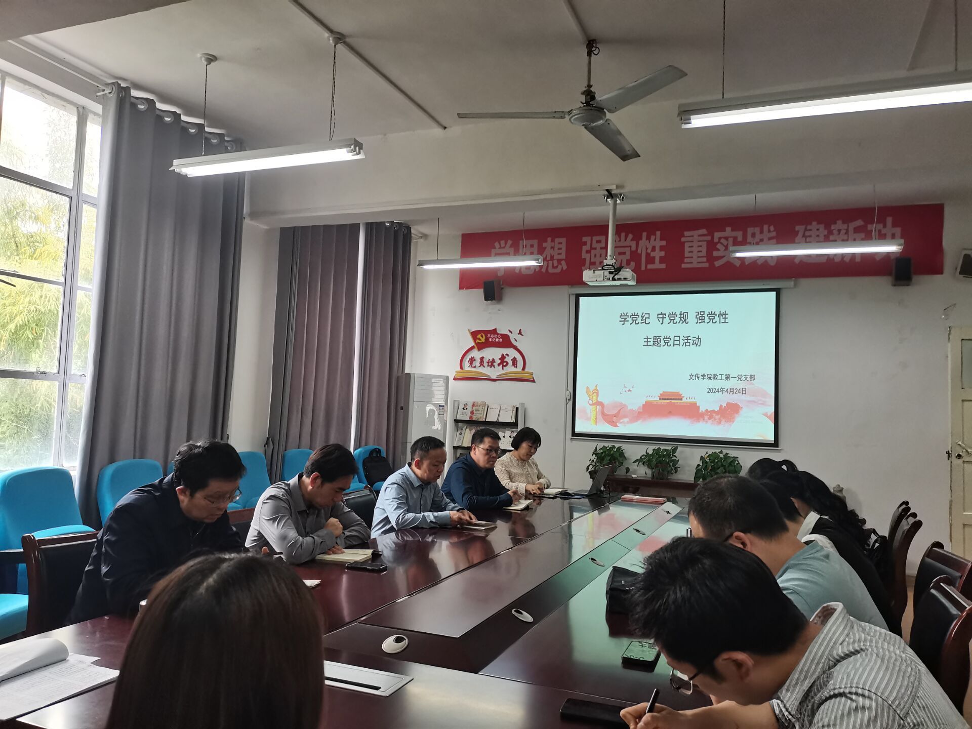 为深入贯彻落实全面从严治党要求,进一步提高党员遵规守纪的自觉性,以党纪学习教育强基固本,推动党员教师的思想自觉和行动自觉,做到内化于心、外化于行,4月24日下午,滚球买球的app官网教工第一支部组织全体党员开展“学党纪、守党规、强党性”四月主题党日活动,活动在2307会议室举行,由支部书记韩文霞主持。