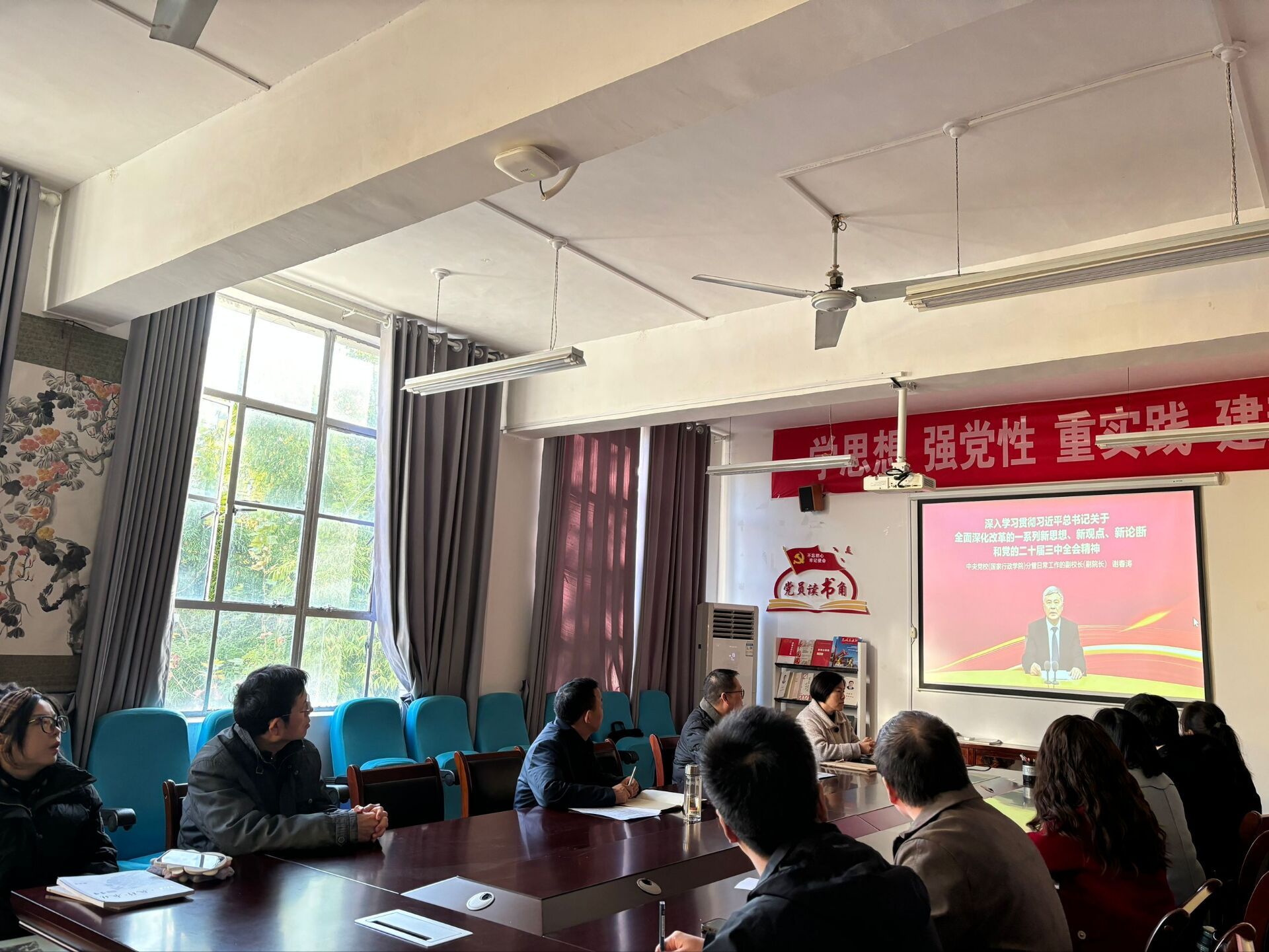 首先由支部书记韩文霞同志组织大家观看中央党校(国家行政学院)分管日常工作的副校长谢春涛关于“深入学习贯彻习近平总书记关于全面深化改革的一系列新思想、新观点、新论断和党的二十届三中全会精神”的讲座视频。视频中谢教授重点对党的二十届三中全会通过的决定中的关于全面深化改革的主题和重大意义做了一些分享,并系统梳理了总书记关于全面深化改革的论述。通过学习,支部党员同志对党的二十届三中全会精神的理解更加透彻。大家一致表示,将以此次学习为契机,进一步增强责任感和使命感,扎实做好教育教学审核评估工作。