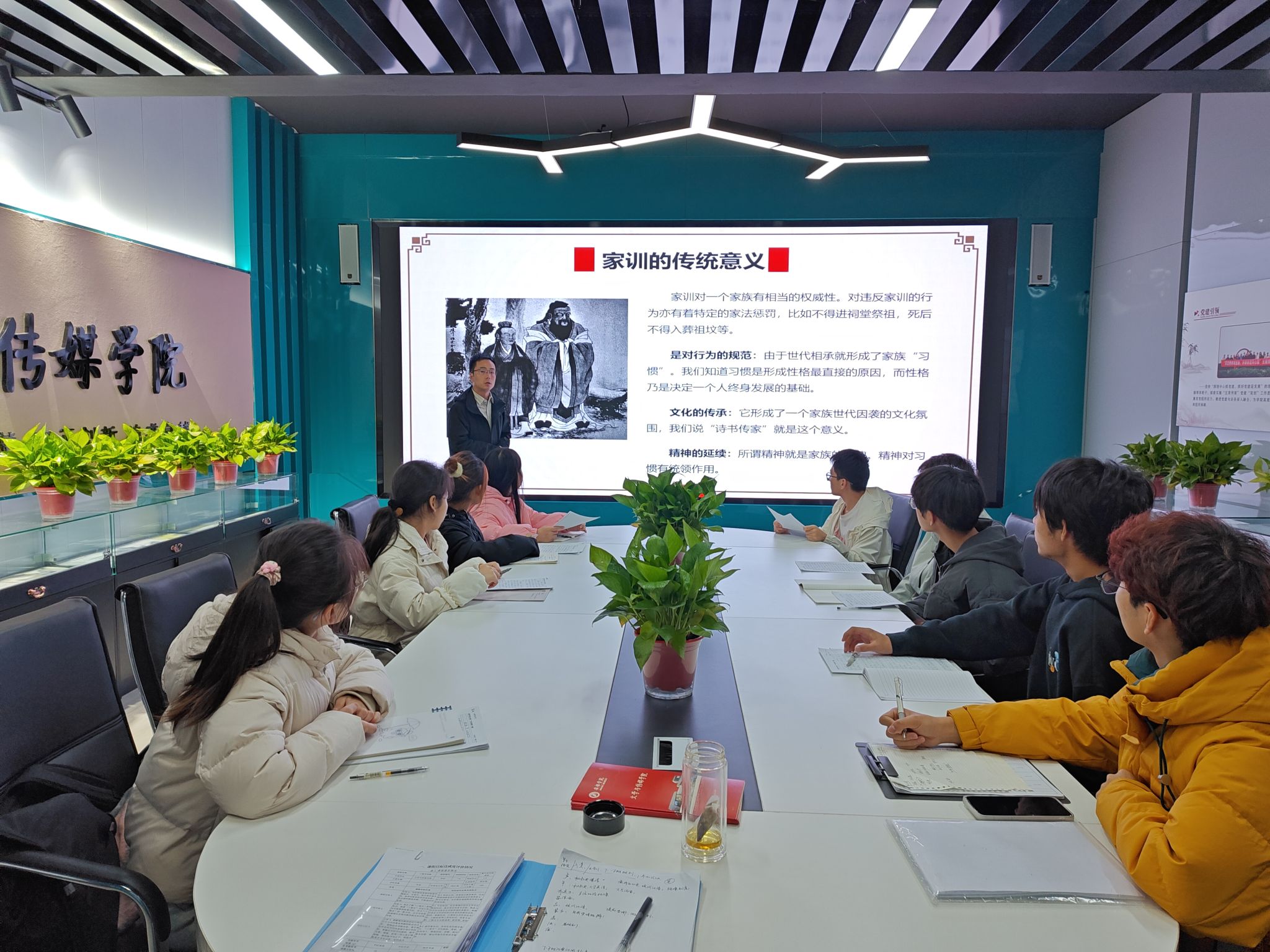 本次活动开展前期,黄治强老师将收集的相关学习材料和PPT发放至学业导师组内,要求同学在10号之前先进行自学。活动当天,黄治强老师为同学们做了《传承家风家训,弘扬传统美德》的主题教育讲座,讲座内容围绕家风、家训两大部分展开,分别从“何为家风”“家风的重要性”“新时代的国风与家风”“名人家风故事”“不良家风的影响”以及“家训的背景与定义”“家训的传统意义”“传统家训中优秀德育思想”“传统家训文化关注点及新启迪”等方面详细讲述了传承优秀家风家训的价值和意义。