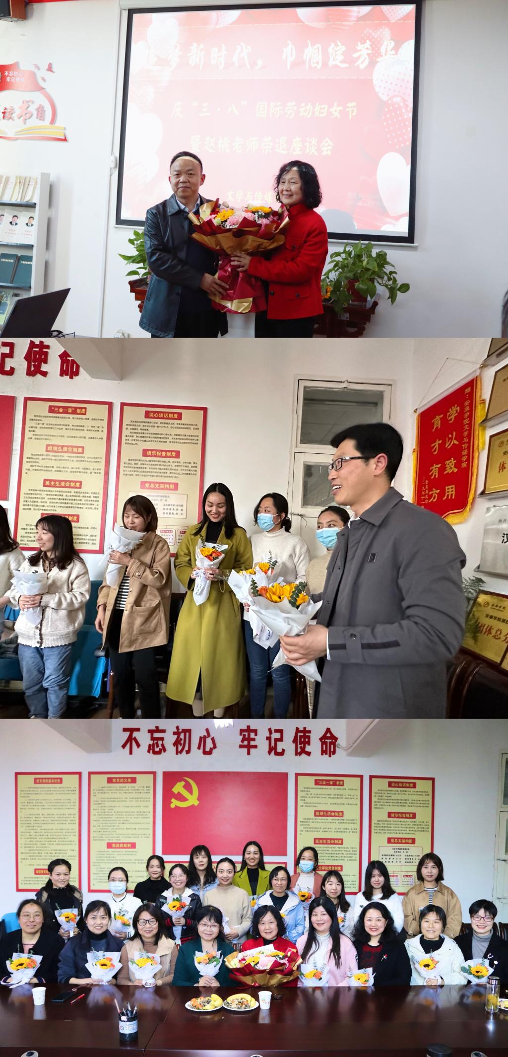 3月8日,滚球买球的app官网召开以“追梦新时代 巾帼绽芳华”为主题的庆“三·八”国际劳动妇女节暨赵桃老师荣退座谈会。学院全体职工参加,活动由党总支书记芦伟主持。