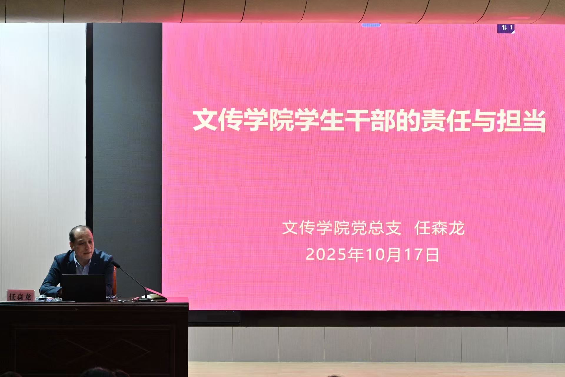 为全面提升学生干部综合素养培养担当精神10月17日晚,文学与传媒学院一号楼报告厅组织开展2025-2026年度第一次学生干部培训会。滚球买球官网党总支书记任森龙担任主讲全院200余名学生干部参加培训会活动由团总支书记彭潇主持。