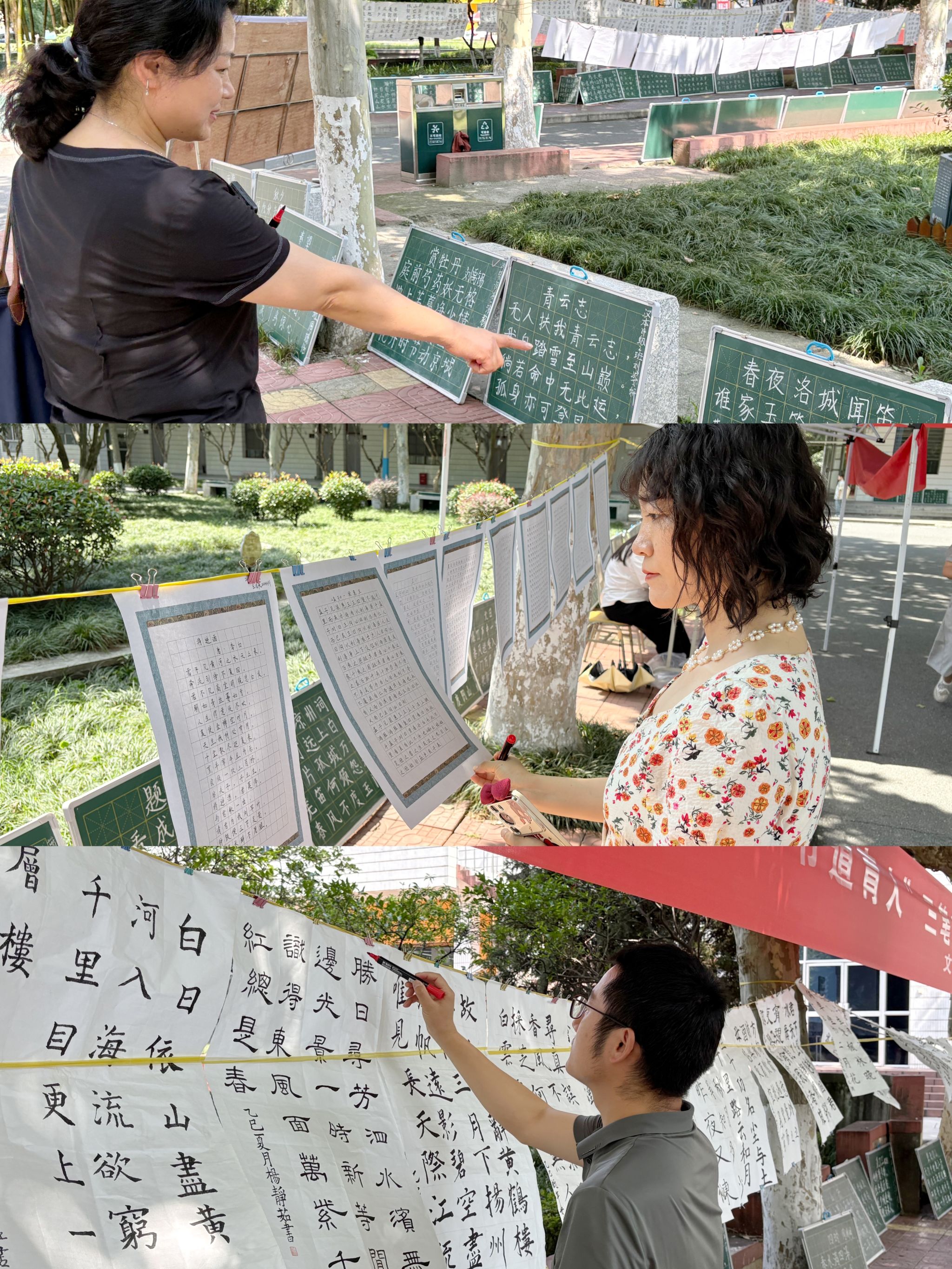 本次活动集中展示了滚球买球的app官网2024级学生在硬笔、毛笔、粉笔三大类书写技能上的训练成果,前期共收到参展作品313幅,经预选后在江南校区2号楼前林荫道两侧现场展示233幅,作品内容涵盖经典诗词、励志名句与传统家训,整体结构工整,布局清晰得当,风格多样,展示了师范生扎实的基本功。