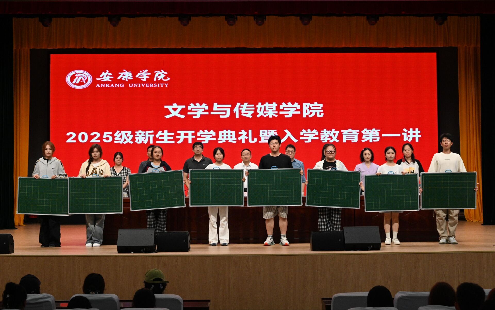 副院长朱云从指导思想、教育主题、安排部署等四个方面解读了《滚球买球的app官网2025级新生入学教育方案》;副院长曹刚宣读了《汉语言文学专业小黑板练字规范要求》;与会老师为新生代表发放了小黑板。