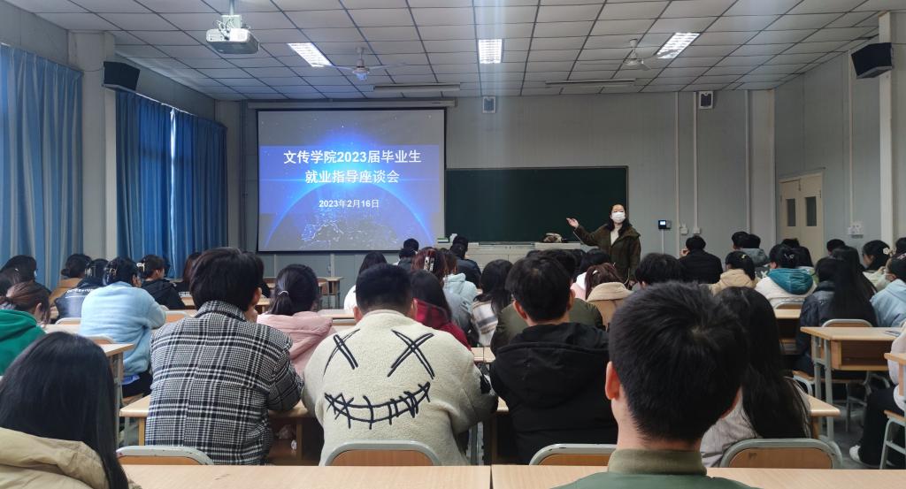 2023年2月16日下午,滚球买球的app官网在1012教室召开汉语言文学、网络与新媒体专业2023届毕业生就业指导座谈会,汉语言文学、网络与新媒体专业2019级全体在校生参会,会议由辅导员老师彭潇主持。