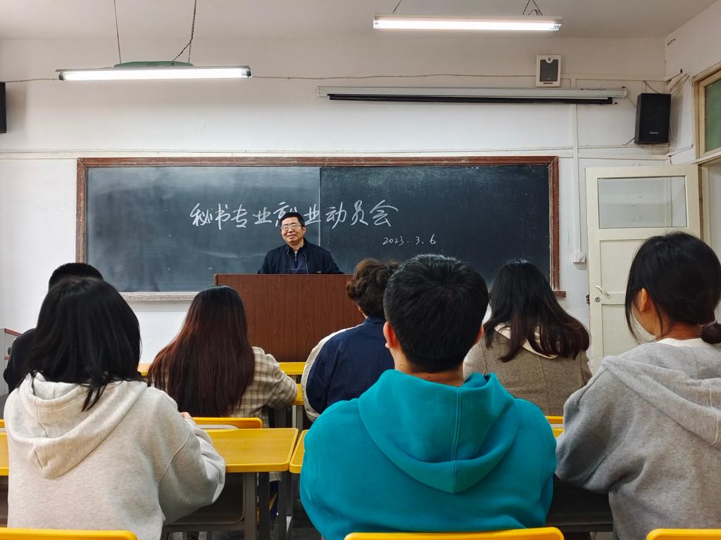 2023年3月6日,滚球买球的app官网在2305教室召开了新学期就业推进会,辅导员邹棠华主持会议,秘书学2019级全体学生参加了会议。