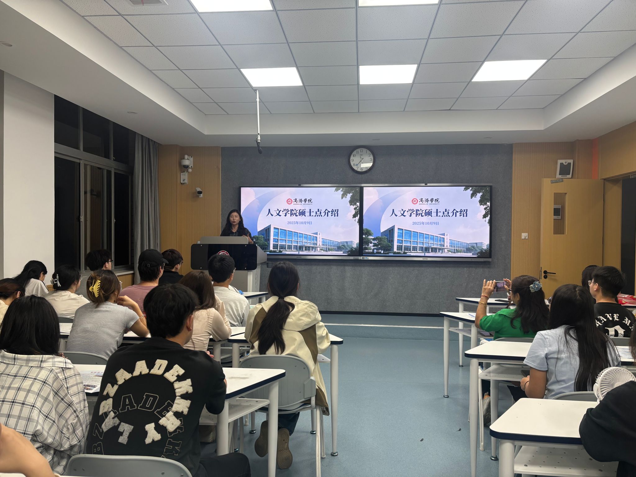 宣讲环节中,任梦池副教授围绕商洛学院人文学院硕士点的办学条件、师资力量、研究方向、培养特色等方面进行了系统介绍。同时,他就同学们普遍关心的学费标准、奖助学金政策、报考流程及就业前景等问题作了详细解答,并结合实例分享了往届研究生的成长与发展路径。宣讲内容详实、重点突出,具有很强的指导性和实用性。