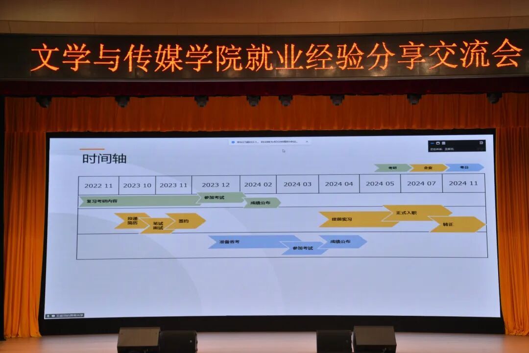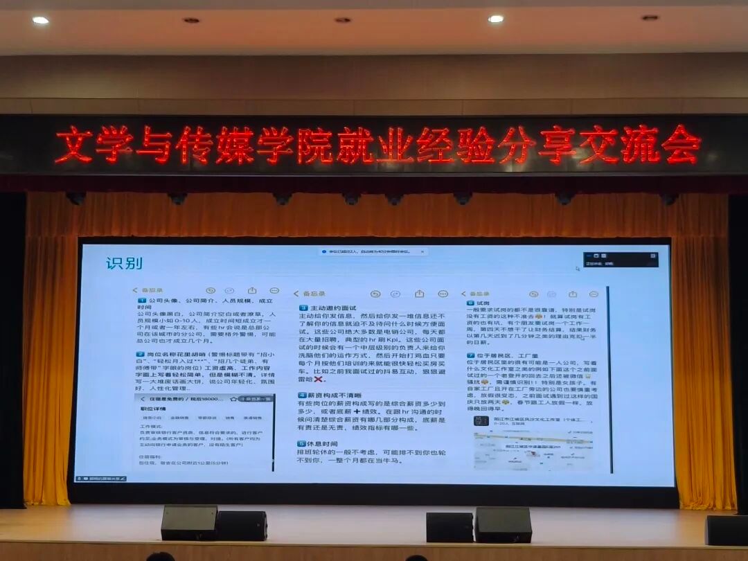 为帮助2026届学生明晰职业规划,提升就业竞争力,6月16日晚7:00,滚球买球的app官网在江南校区大礼堂组织开展“榜样引领,筑梦未来”就业经验分享交流会,特邀网络与新媒体2019级1班陈乐欣、汉语言文学2020级3班王振羽、秘书学2020级1班郭杨三位校友以线上形式进行分享。滚球买球官网学工办主任薛涛、辅导员彭潇及2022级全体同学参加活动,活动由薛涛主持。