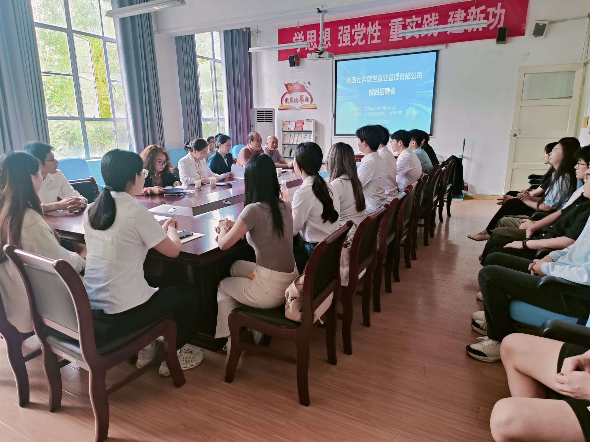 面试结束后,任森龙等人与陕西仕帮盛世置业管理有限公司人员进行了座谈,达成了校企持续合作的用人意向。