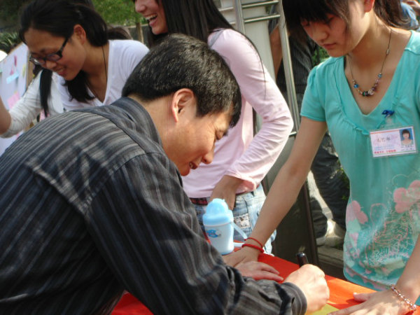 5月26日下午,在一号教学楼六楼报告厅,活动组织者以别开生面的形式举行了一场“女生心理沙龙”,邀请了中文系副教授王瑛老师,著名作家中文系副教授李春平老师,教科系王小康老师等嘉宾参加本次活动。中文系08级学生在沙龙上以互动的形式与几位老师展开心的交流。老师们生动幽默的语言,精彩传神的表演,使同学们在轻松愉快的环境中与老师们一起探讨当代女生存在的心理问题及大学生恋爱问题,让同学们了解了大量的心理知识,对本次沙龙也留下了深刻印象。