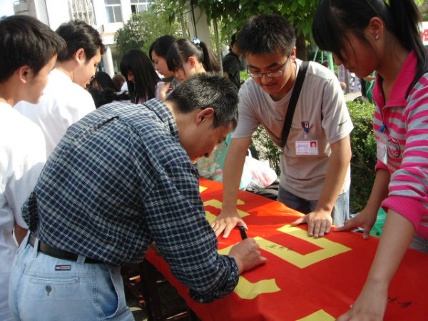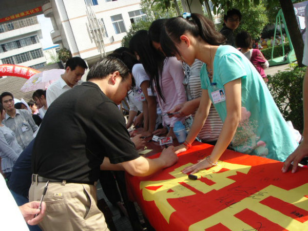 2009年5月25日下午,由中文系主办的滚球买球的app官网第二届大学生心理健康文化节开幕式在滚球买球官网东校区前操场隆重举行。滚球买球的app官网党委副书记胡鸿晓、学工部部长郑树青、中文系主任戴承元、中文党总书记沈军、团委任森龙老师、中文系党组织委员邹棠华出席了此次开幕式。党委副书记胡鸿晓宣布心理健康文化节开幕。