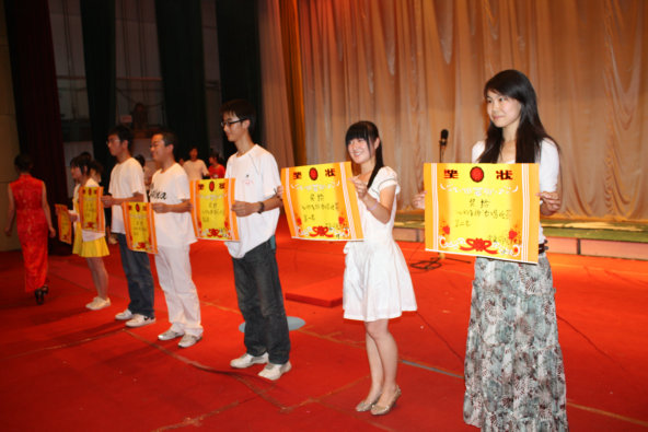 第三届中文系歌咏比赛――“心的飞扬―乘着歌声的翅膀”作为本届活动的闭幕演出。中文系十七个班级的同学们用青春的歌声唱响了团结的力量,唱出了坚定的信念。最终,08级语文教育3班荣获一等奖,07级汉语言文学1班、06级汉语言文学1班等班级分获二、三等奖。