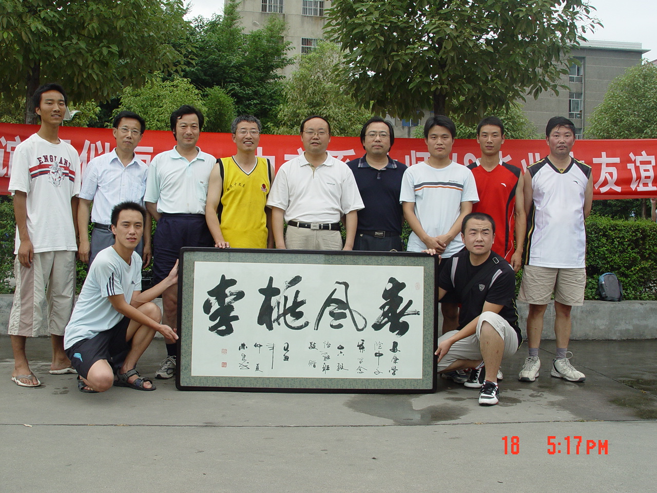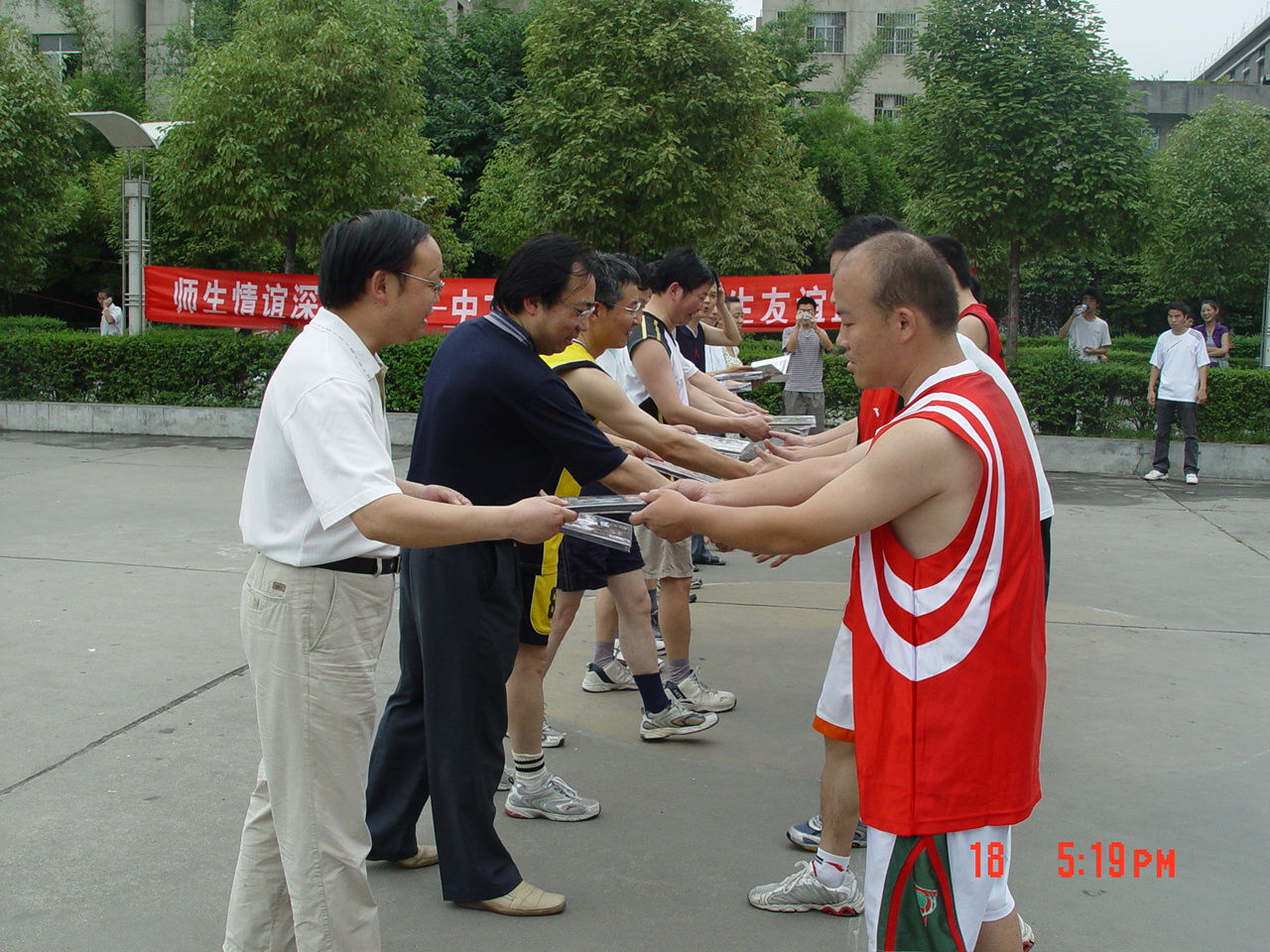 由沈军,雷升录、梁卫华、刘海、朱云、周龙田、韩烨等老师组成的教师队和毕业生组成的学生队展开对抗。比赛开始之前,系上老师们真诚的给同学们赠送了礼物,表达他们对即将离开学校的学子们的殷切期望和深切感情。