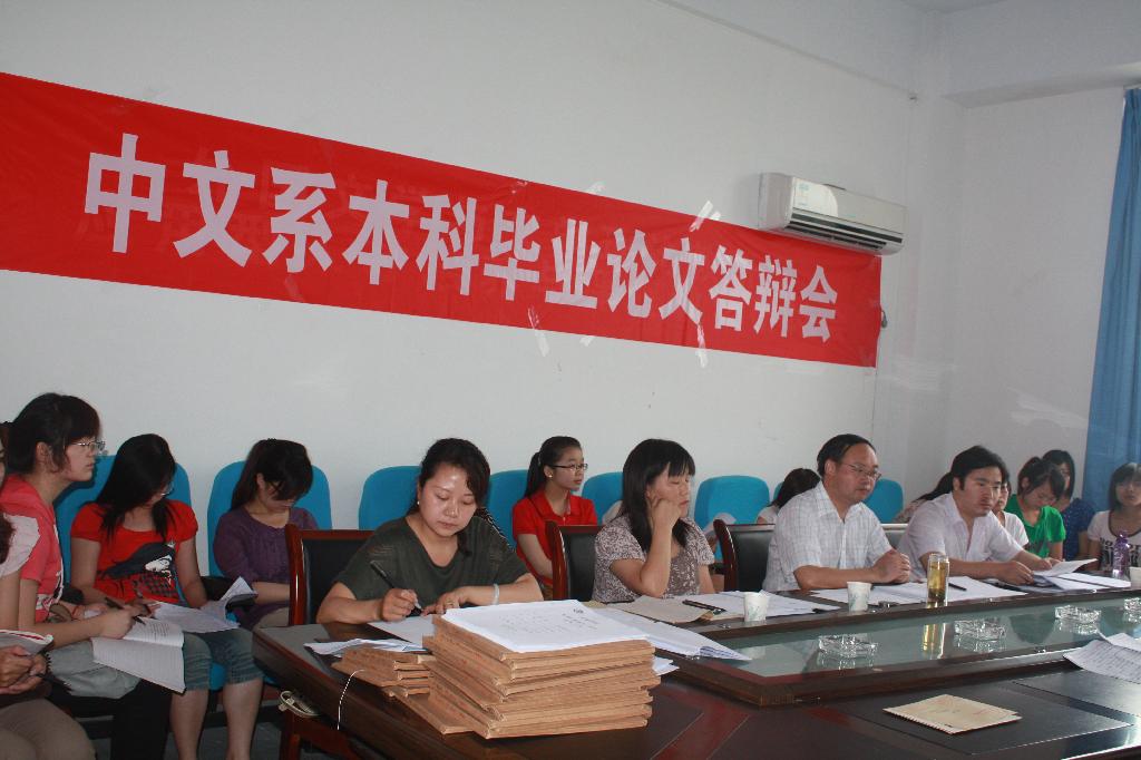 导航痕迹 首页 > 新闻通知 > 学院新闻 > 正文 学院新闻 通知公告 中文系2011届本科毕业论文答辩工作顺利结束 发布人:zwx 发布日期:2011年06月08日 阅读次数: 2011年6月3日至2011年6月5日,中文系组织并顺利完成了2011届本科毕业论文答辩工作。本次答辩工作分十个答辩小组进行,历时3天,40余名教师参加了本次答辩工作,243名学生接受了答辩,100余名2012届本科生旁听了答辩。整个答辩过程要求严格,组织有序。本次毕业论文答辩是对我系学生四年本科学业的一次检阅,对2012届本科生的学习起到了一个良好的示范引导作用。