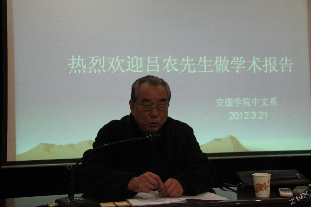 3月21日晚,原安康市群艺馆馆长吕农先生应邀主讲“金州讲坛”第十三讲,讲座的题目为“安康地域文化本质品相的整合重构”,中文系党总支书记李岩、辅导员及二百多名学生出席了讲座。讲座由中文系副主任杨运庚主持。