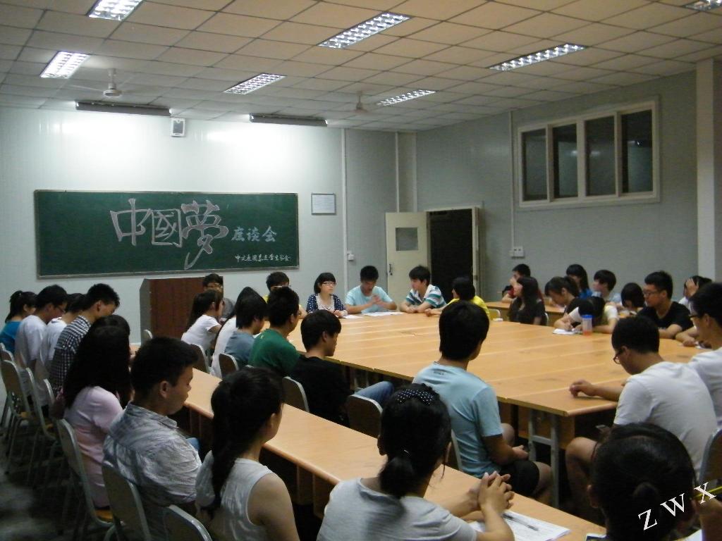 2013年5月24日晚20:00,中文系团总支在1011教室组织开展了“我的梦中国梦”主题座谈会,系团总支学生分会主要干部、各班级团支书以及部分学生代表参加了此次座谈会,共话“我的中国梦”。座谈会上,气氛活跃而热烈,同学们纷纷就“我的梦中国梦”畅所欲言。