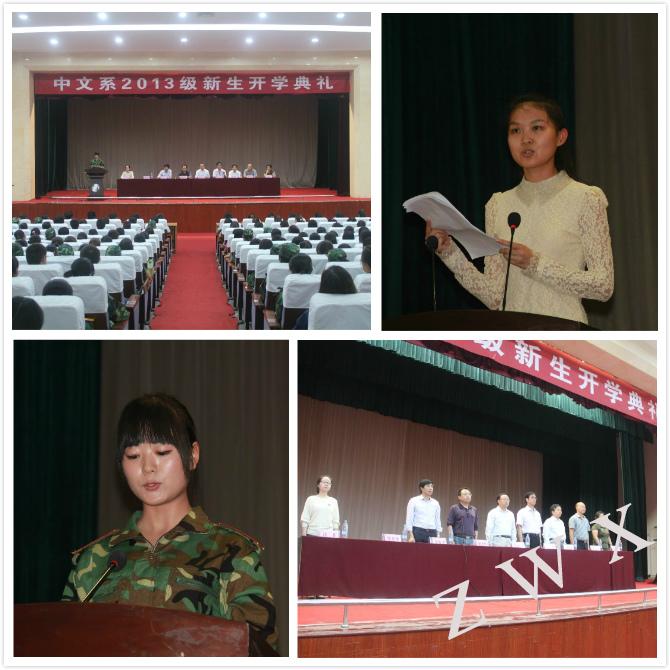 汉语言文学专业11级温雅同学、秘书学专业13级吴策策同学分别代表老同学和新同学发言。温雅赠言新入学的学弟学妹们:“要脚踏实地,怀抱理想,才会在大学里收获成功与希望”。吴策策代表新生表达了将会在中文系努力奋斗的决心和对大学生活的美好憧憬。