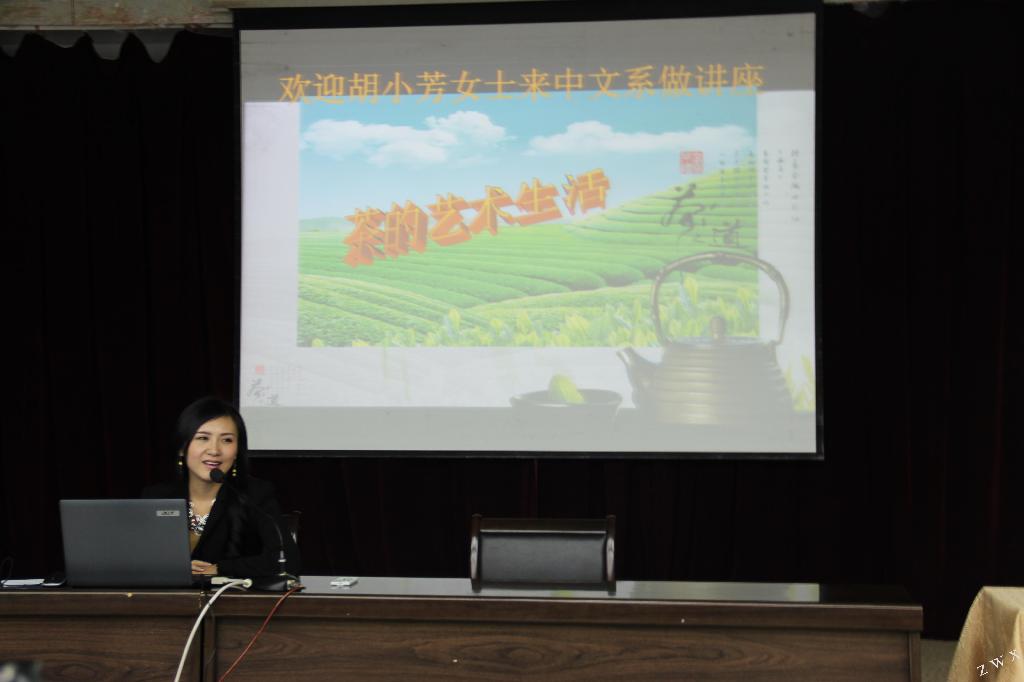 11月7日晚,中文系优秀校友、安康硒茶形象大使胡小芳女士应邀来滚球买球官网主讲“金州讲堂”第21讲,讲座题为“茶的艺术生活”。中文系近二百名学生参加讲座。讲座由中文系副主任杨运庚主持。