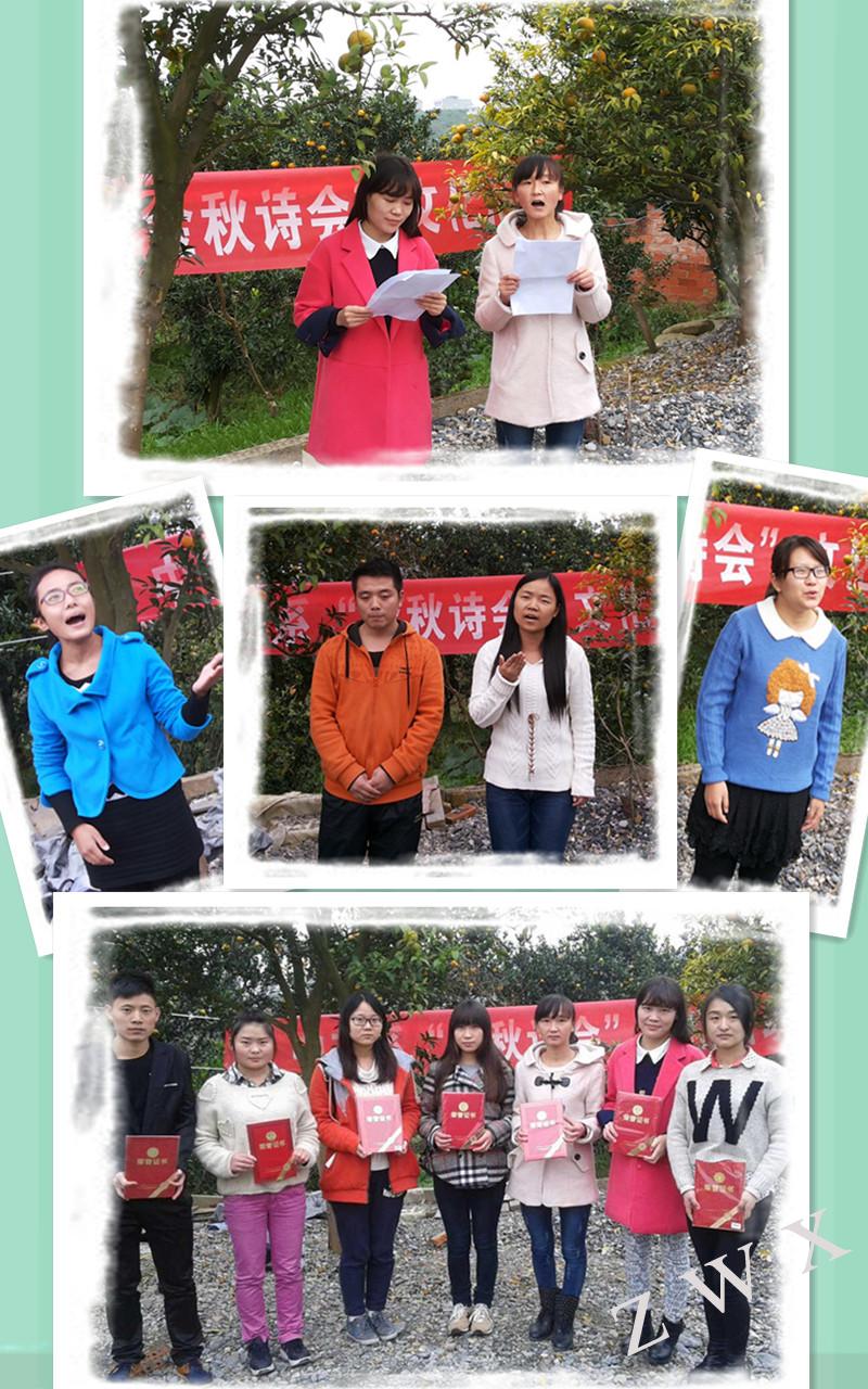 落叶纷飞的季节,硕果累累的橘园,总是有着无穷的诗意。同学们带着浓烈的诗情,面对如画的金秋美景,纷纷登台朗诵自己准备已久的诗篇。饱满的诗情,激扬的文字,使九里湾的田园多了几分诗意,使硕果累累的果园多了几分秋趣。