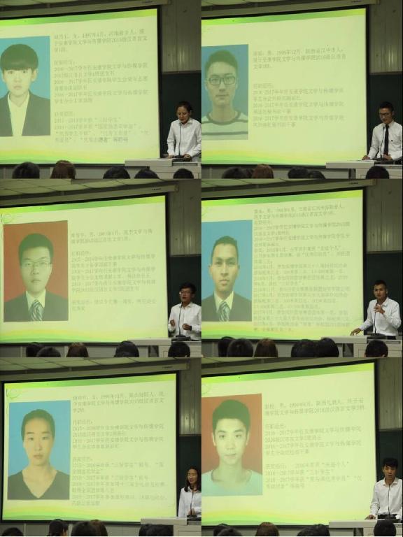 第二阶段举办学生会主席团换届选举大会,会议分为选手演讲和学生代表投票两个环节。首先由主持人介绍竞选人员基本信息,并宣读竞选基本流程及注意事项。随后参加竞选的6名同学分别做了精彩的竞聘演讲,演讲结束后学生代表统一进行投票,根据计票结果,田乃玉、单智宇、黄永、杨叶叶、彭俊5人当选为新一届学生会主席团成员。