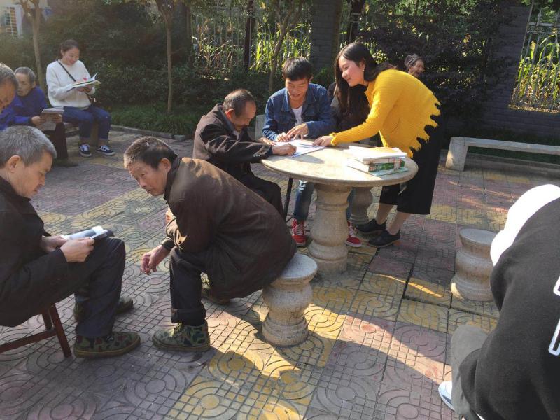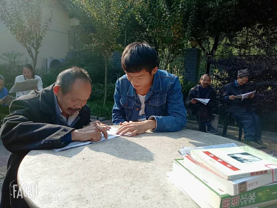 志愿者们满怀期待地与老人们见了面。闲聊中了解他们的生活日常;暖阳下为他们诵读红色作品选段,与他们一起解读党的十九大精神,使老人们敞开心扉地笑谈农村翻天覆地的变化;一起阅读“老年康乐报”“陕西健康报”;与老人一同欣赏《安康年俗》,通过志愿者们的深入解读,让他们对安康各地区的年俗有了进一步的了解。为老人们在重阳节前夕送上了最真诚的祝福!