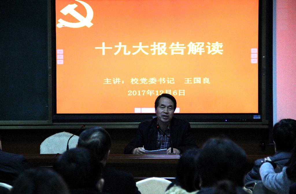 12月6日下午,学校党委书记王国良同志为滚球买球的app官网全体师生党员、入党积极分子讲党课,对党的十九大精神进行深入解读。会议由滚球买球的app官网党总支书记于咏梅主持。