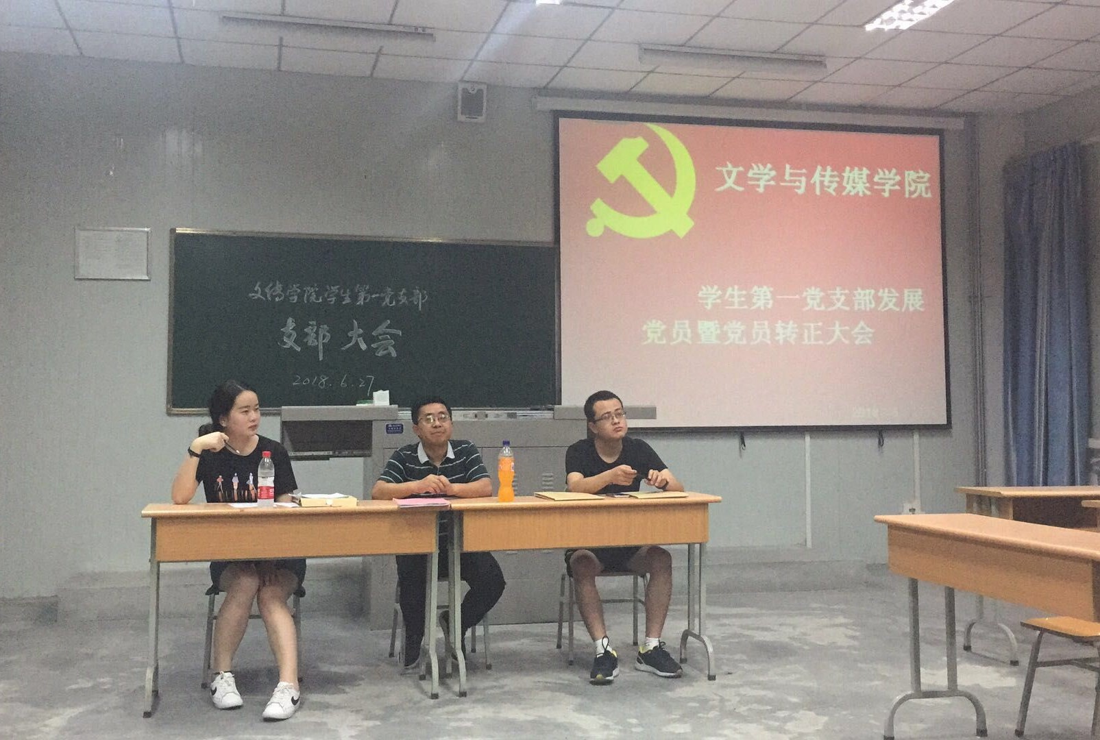 2018年6月27日晚,滚球买球的app官网学生第一党支部在1013教室召开了中共预备党员转正暨接收中共预备党员大会。学生第一党支部全体正式党员、预备党员及拟接收中共预备党员参加了本次大会。大会由支部书记邹棠华主持,主要讨论中共预备党员陈佳瑶、黄思钧、邢云芸三位同学的转正问题及刘昱伶、钟博雅、李佳格、吴佳昊四位同学接收为中共预备党员问题。