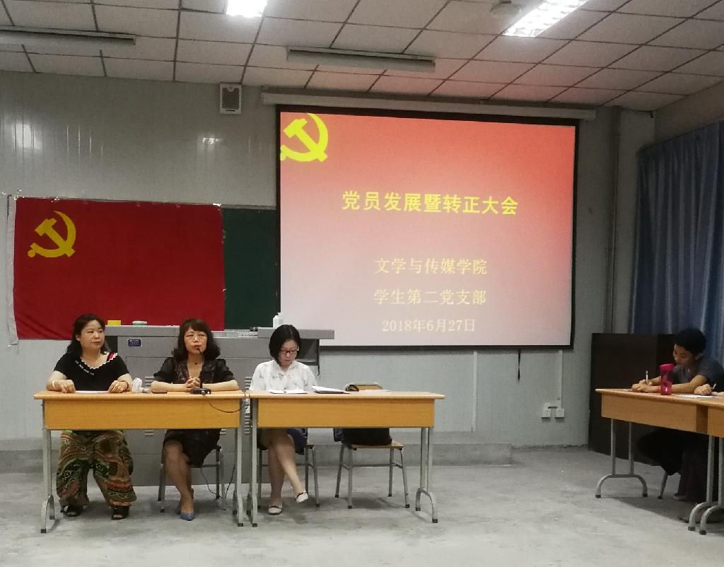 2018年6月27日下午,滚球买球的app官网学生第二党支部在1017教室召开接收中共预备党员暨中共预备党员转正大会。滚球买球的app官网党总支书记于咏梅、学生第二党支部书记沈菲、学生第二党支部全体党员参加了本次会议。会议由沈菲主持。