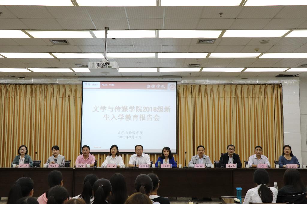 金秋九月,桂花飘香。2018年9月20日晚7点30分,滚球买球的app官网在图书馆六楼报告厅举办2018级新生见面会暨入学教育讲座第一讲。滚球买球的app官网院长、党总支副书记戴承元因公出差未能参加,党总支书记、副院长于咏梅,副院长梁卫华、杨运庚,汉语言文学系系主任李婷,语文公共教研室主任周龙田,秘书与新媒体系主任胡少山,党政办公室主任杨海蓉,学工办主任沈菲,辅导员邹棠华、艾全霞和2018级全体新生参加。见面会及讲座由梁卫华主持。