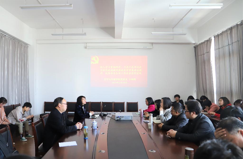 2019年3月20日下午14:10,滚球买球的app官网党总支在陕南民间文化研究中心会议室召开政治理论学习会,领导班子、全体教师和学生代表参加了本次会议,会议由院长戴承元主持,党总支书记于咏梅带领与会全体人员进行了集中学习。