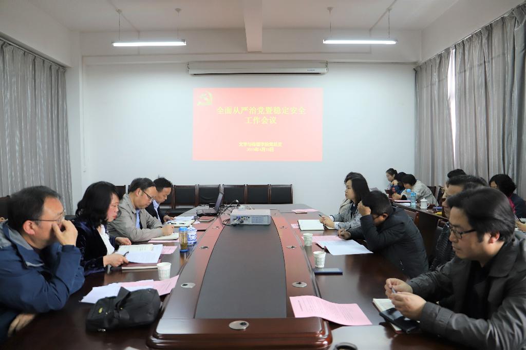 4月10日下午,滚球买球的app官网在陕南民间文化研究中心会议室召开了全面从严治党暨稳定安全工作会议。院长戴承元、党总支书记于咏梅、副院长梁卫华、杨运庚以及全体教师出席会议。会议由戴承元主持。