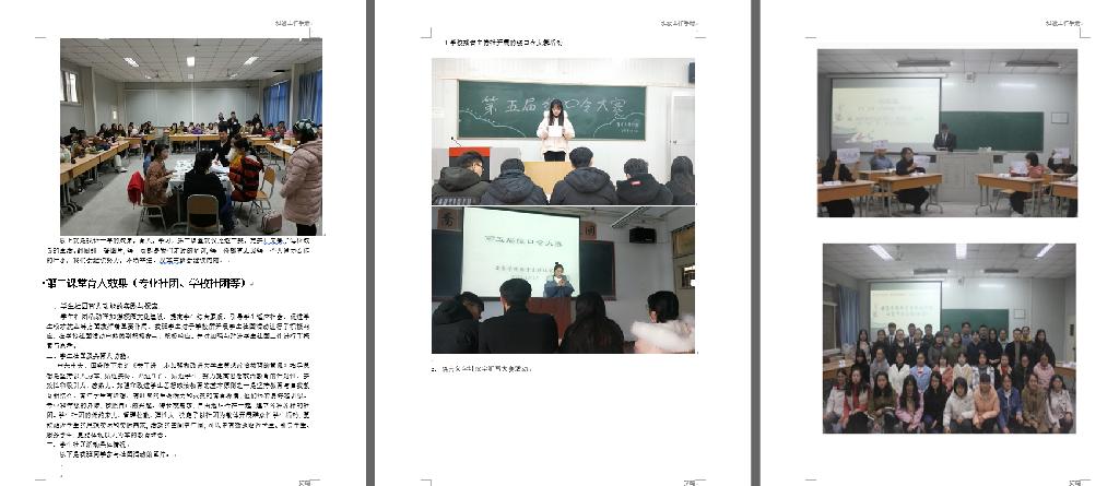 滚球买球的app官网一直以来高度重视班级建设工作,从2016年下半年开始,结合实际制定了班级工作手册模板,要求每个班级每学期末交一份班级手册,强化班级建设,在提班风改舍风促学风上取得了一定实效。为强化班级建设,连续三年举办学生干部培训班,各班班长团支书全员参加培训,提升班级学生干部的工作能力与整体素质。此外,重视制度建设,开展文明班级(五四红旗团支部)评选活动,各班级纷纷创优争先,完善班级制度,凝聚班级力量,培育班级文化。在文明班级创建过程中,通过一学期一本的班级工作手册,全方位多层次宽领域全面记录班级这一学期的成果与不足,对班级一学期工作进行总结与反思,激励班级下一学期保持优点,改进不足,同时也方便班级资料查找,为大学生活留下宝贵可触碰的记忆。