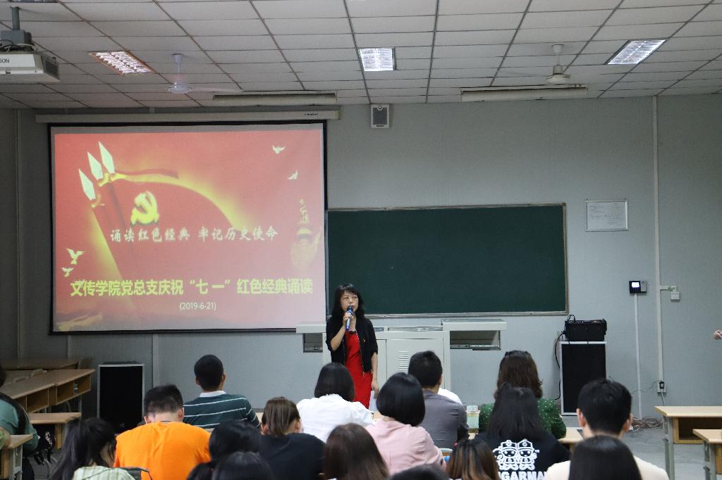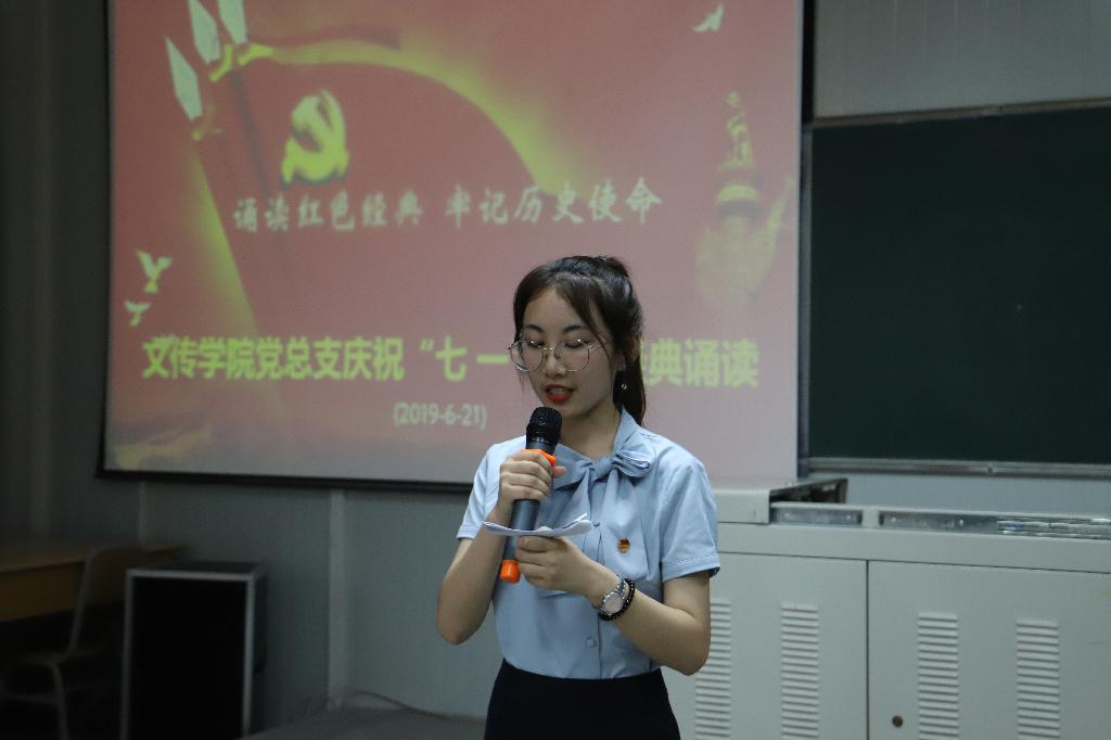七月,见证给岁月的是一串串永远的火红,澎湃在我们心头的是无休无止的涛声。为庆祝中国共产党建党九十八周年,以诵读红色经典的形式,教育党员不忘初心,牢记使命,砥砺前行跟党走;在诵读红色经典中回望激情燃烧的岁月,缅怀革命先驱光辉的业绩,以红色经典促党性修养。2019年6月21日,滚球买球的app官网在江南校区10号教学楼1025教室开展“诵读红色经典,牢记历史使命”庆祝“七一”红色经典诵读主题党日活动。滚球买球的app官网党总支委员会、党支部委员会成员,学生第一、第二党支部学生党员,教工第一、第二党支部部分党员,第18期发展对象、第47期积极分子参与了本次诵读活动。本次活动由2017级秘书学一班学生杨彩艺、党卓文主持。