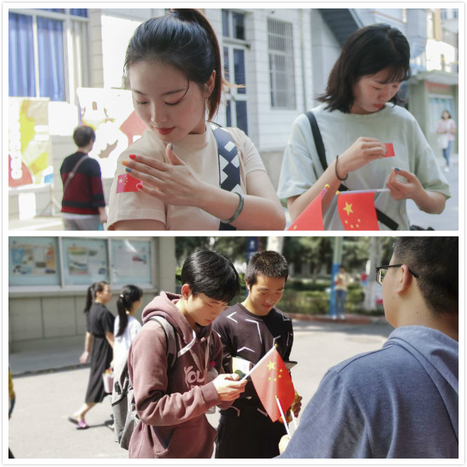 随后,进行了“带着国旗去旅行”活动,向过往学生发放小国旗或者国旗贴纸,希望大家能够带着国旗踏上旅程,祖国母亲一直留驻心间,并通过相机记录下这美好的时刻。
